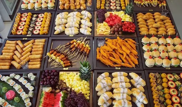 - تنوع خیرهکننده: از انواع کاناپهها، مینی ساندویچها، تارتلتها، رولها، سیخهای کوچک میوه و سبزیجات گرفته تا مینی پیتزاها و سمبوسههای لقمهای و بورک، دنیایی از طعم و رنگ در اختیار شماست.